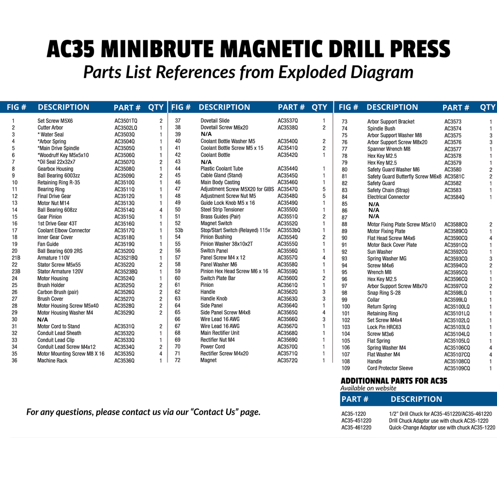 - Keeps the AC35 in Service Without Replacing the Machine. Instead of retiring a reliable magnetic drill, AC35 replacement parts allow operators to restore full functionality and extend equipment lifespan.